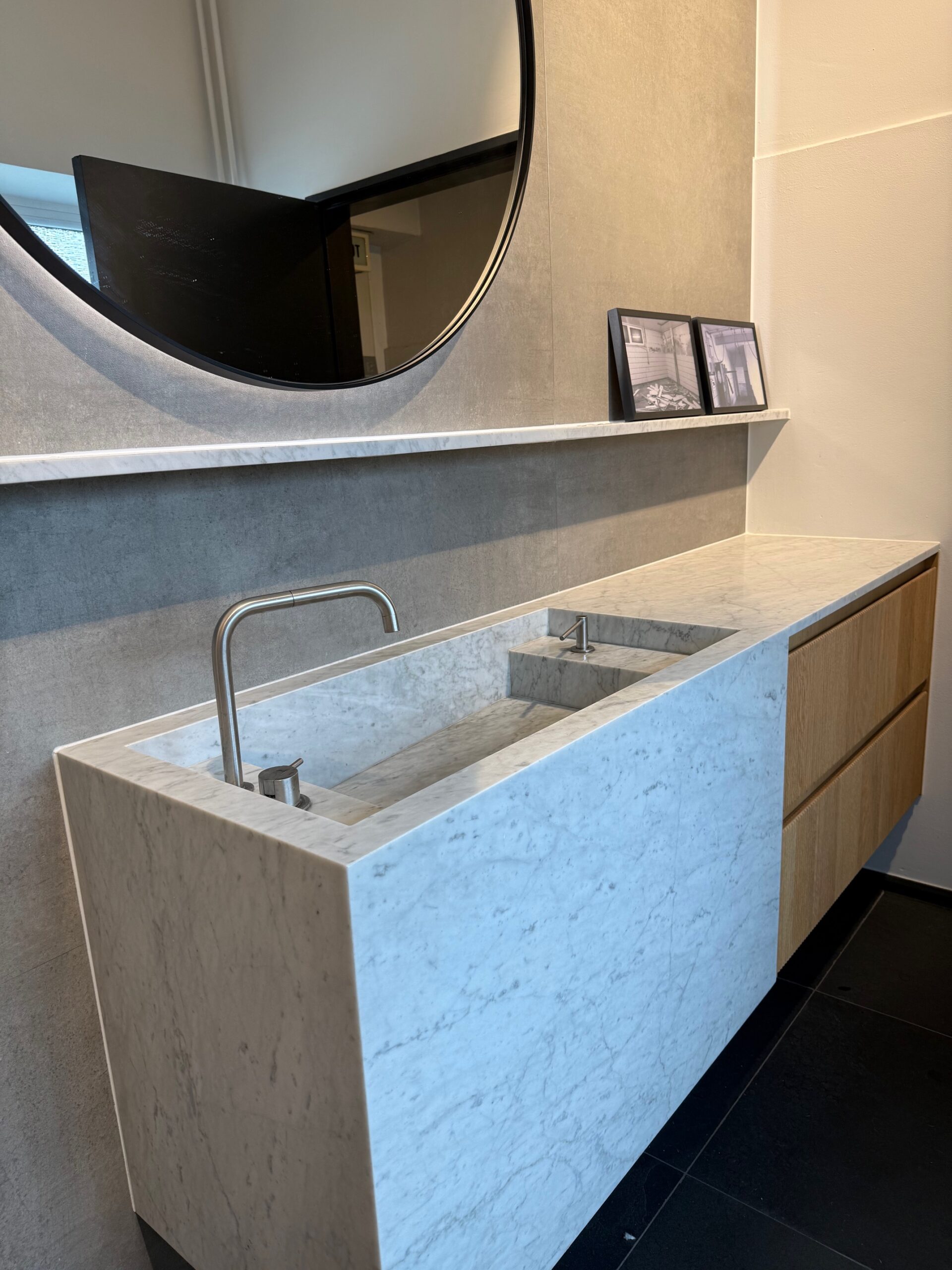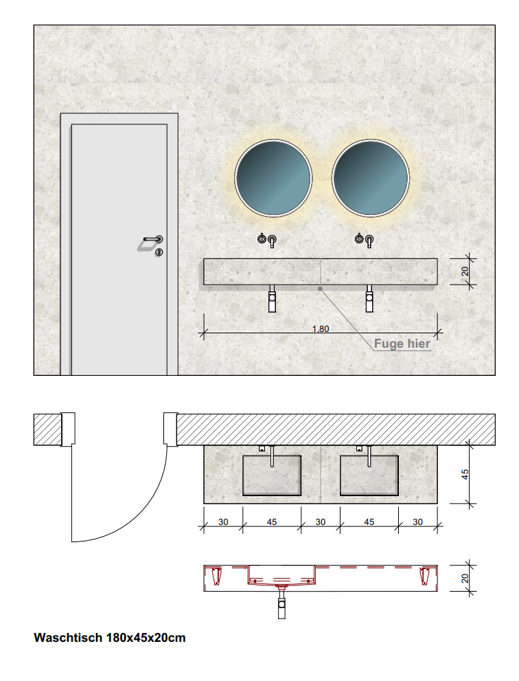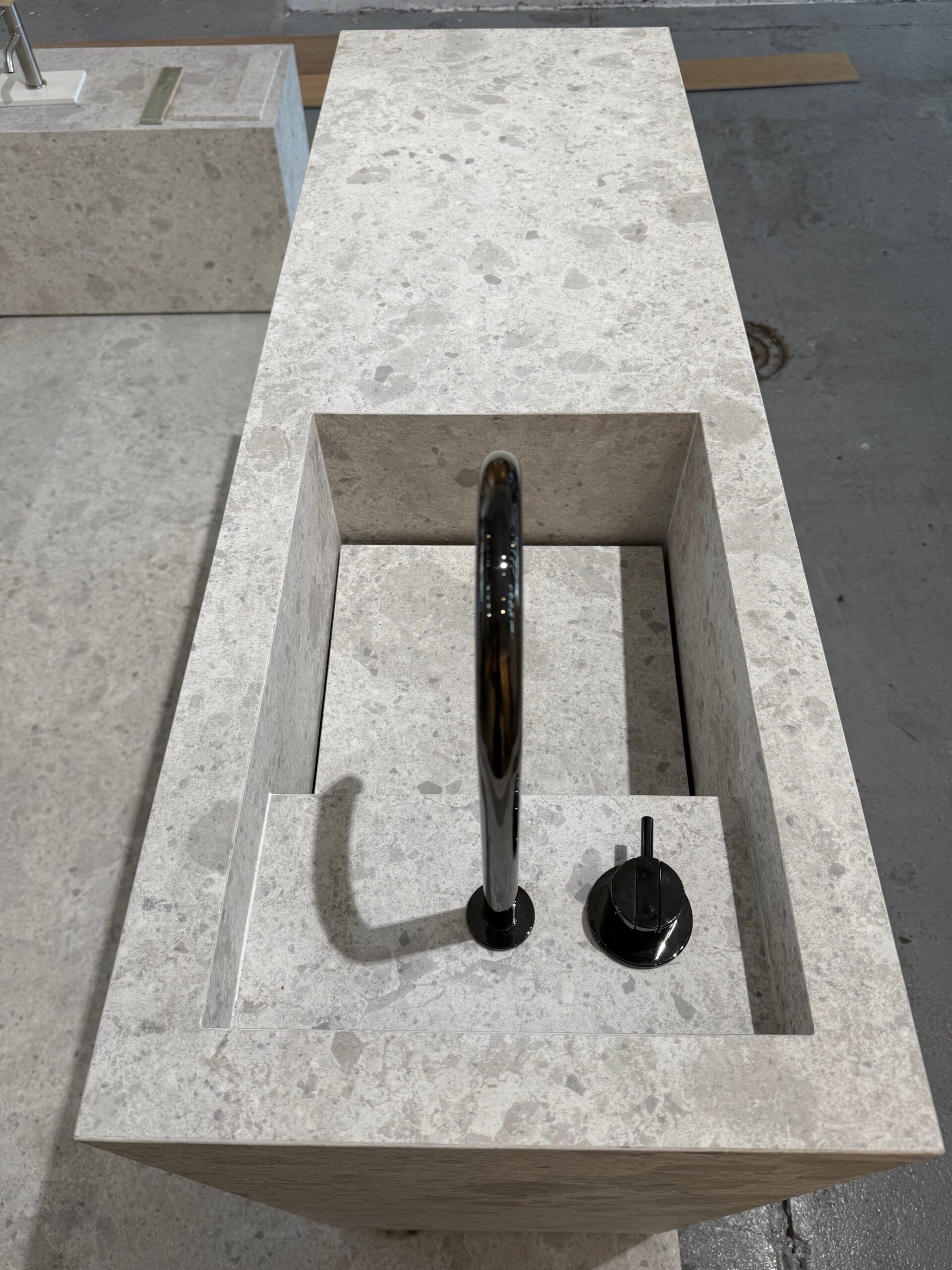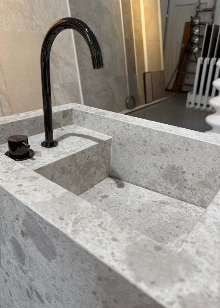 Verwandeln Sie Ihr Badezimmer mit unseren innovativen Fliesen-Waschtischen in einen modernen, funktionalen Raum. Diese einzigartigen Waschtische kombinieren hochwertiges Fliesenmaterial mit durchdachtem Design und bieten Ihnen eine ideale Lösung für jedes Badezimmer, oder als Küchenarbeitsplatte mit passenden Bodenfliesen. Durch unsere Manufaktur können wir mit Wasserstrahler-Schneidesystem, alle Dimensionen bis zu 3 Meter fertigen lassen.